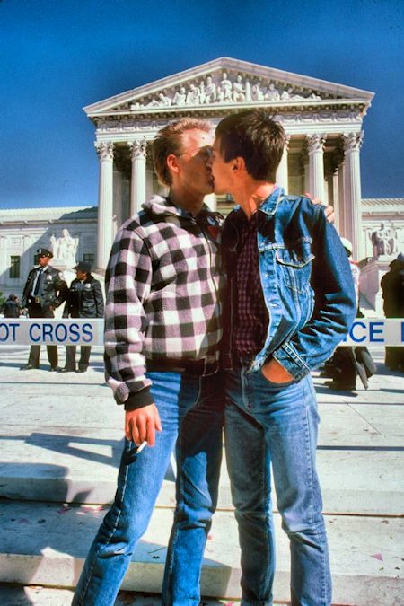 Photograph of Ron and Paul; in front of the US Supreme Court during a protest over the Bowers v Hardwick decision, 1986.
